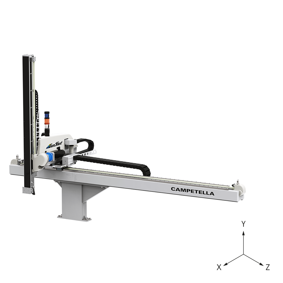 Kartézský průmyslový robot GS2 X-Series je navržen tak, aby zajistil maximální zkrácení cyklových časů a byl vhodný pro vstřikovací lisy středních tonáží. Označení tohoto modelu je akronymem slova „GunShot“ – výstřel. A skutečně neexistuje výstižnější pojem, který by lépe popsal jeho explozivní rychlost.