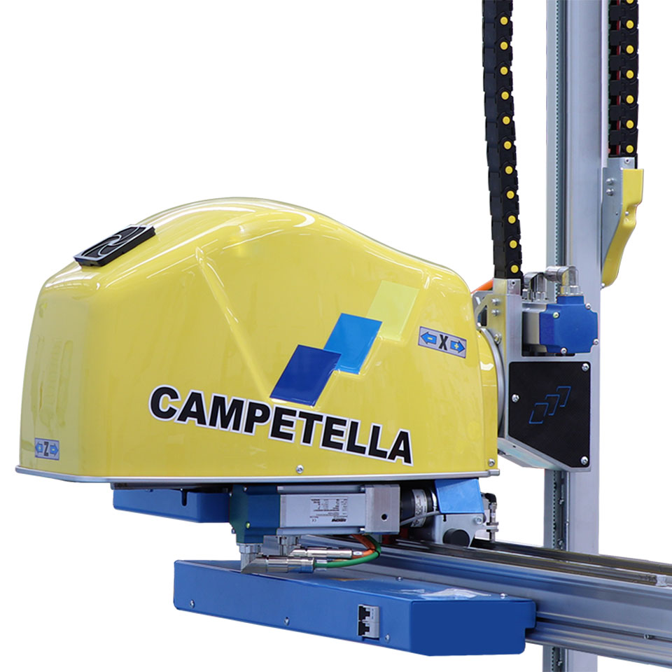 Campetella nabízí kartézské roboty pro co nejpřesnější a nejšetrnější manipulaci s estetickými díly, řešení IML pro atraktivní a trvanlivé dekorace, kompletní pracoviště určená pro automatizovanou montáž výrobků i automatizované balení a paletizaci.