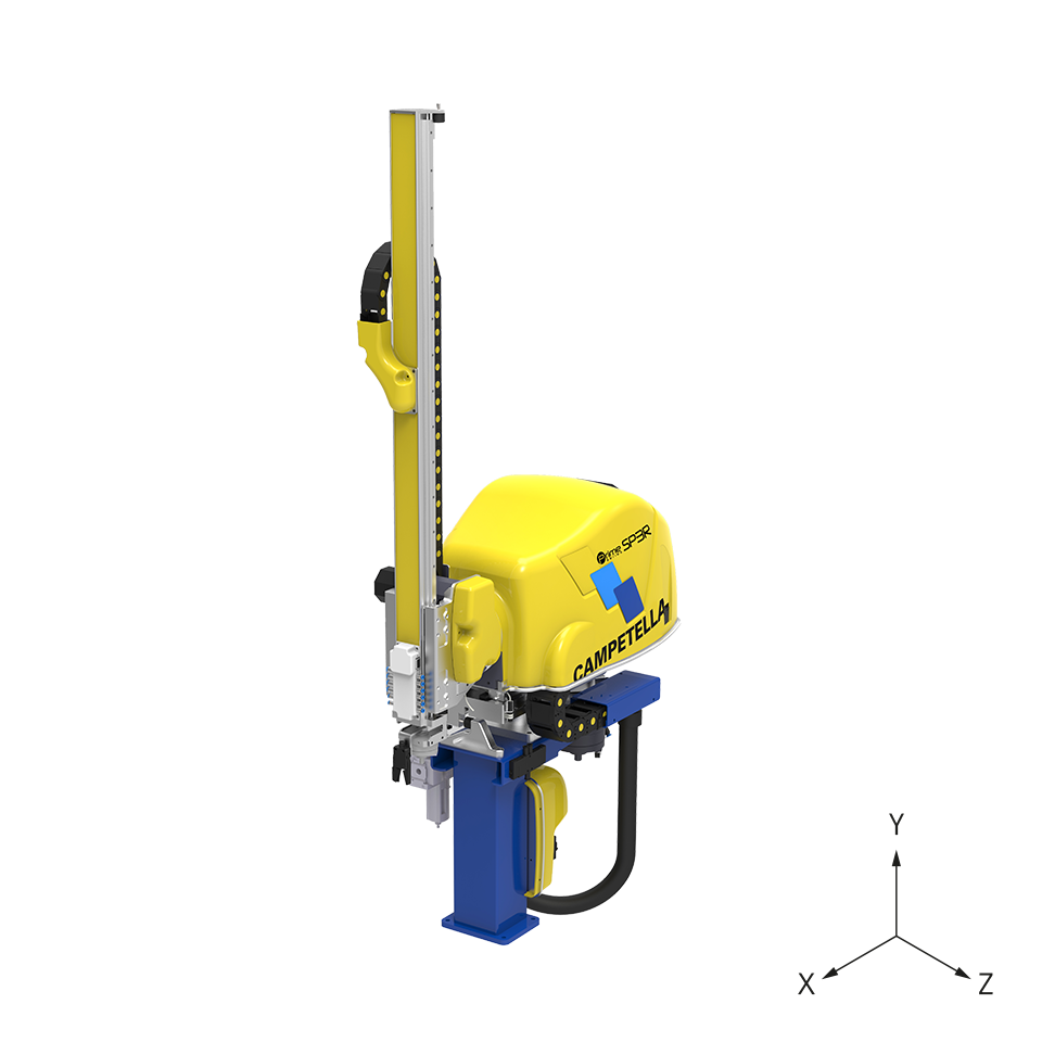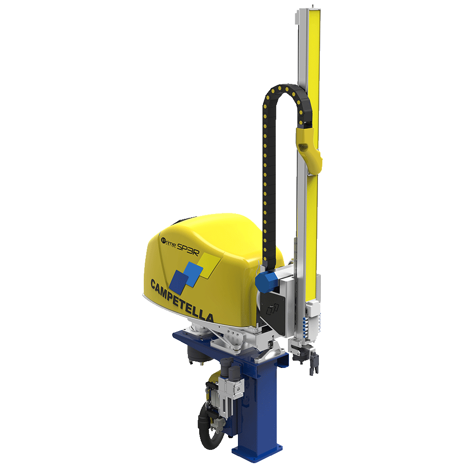 SP3R-AR PRIME-Series je kartézsko-rotační sprue picker vyrobený z hliníkových profilů, doporučený pro vstřikovací lisy o tonáži od 20 do 300 tun. Jeho zvláštností jsou tři elektrické osy řízené servomotory – dvě lineární (X, Y) a jedna rotační (A) pro rotaci vertikální osy. Navíc je vybaven nastavitelnou rotační pneumatickou základnou, která je v některých případech ideálním řešením pro minimalizaci půdorysných nároků automatizace.