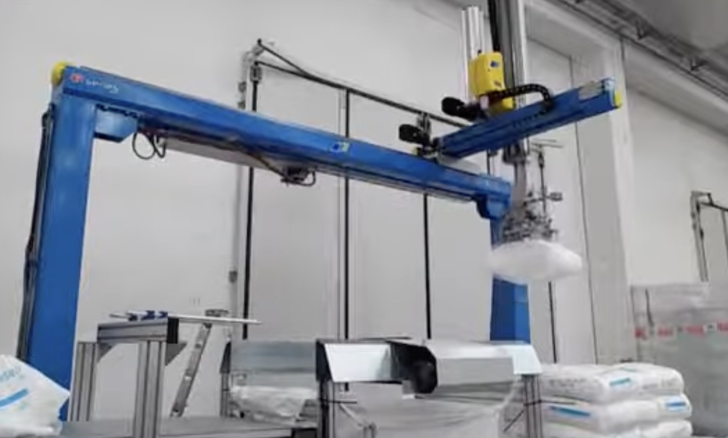 Robotická vykládka sypkého materiálu v pytlích