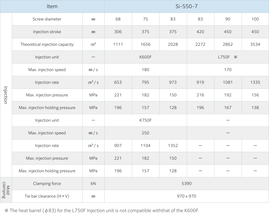 Zvětšením otevření mezi deskami (daylight) a rozšířením rozteče mezi táhly byla zvýšena flexibilita při instalaci forem. Větší prostor zároveň umožňuje snazší integraci zařízení pro výměnu forem, což přispívá ke zvýšení efektivity výroby.