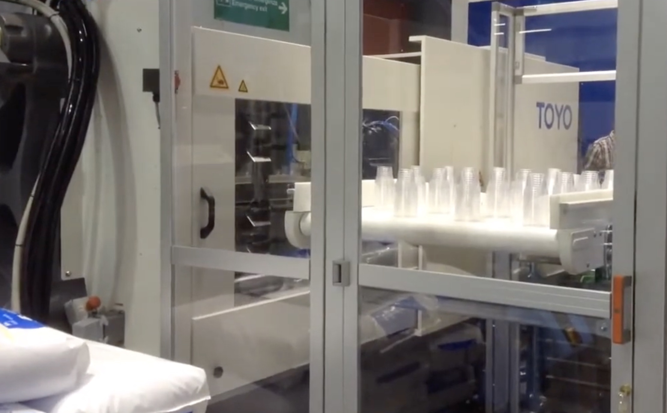 Výroba kelímků (nápojové kelímky 12 kavit), přepravek a technických dílů na plně elektrických strojích TOYO. Úspora až 80 % elektrické energie oproti hydraulickým lisům.
